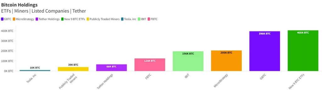 Los diez fondos juntos, ya poseen más de 800.000 BTC, lo que equivale al 4% del suministro total de Bitcoin, es decir, sumando el que aún está por minar.
