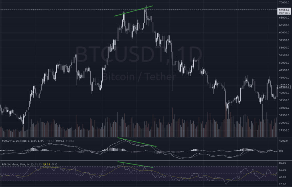 Divergencia bajista en zona de sobrecompra con RSI y MACD