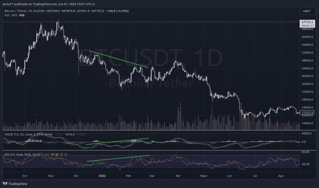 Dentro de este tipo de análisis, las divergencias son herramientas poderosas que pueden ofrecernos señales tempranas de posibles cambios en la tendencia de los precios.